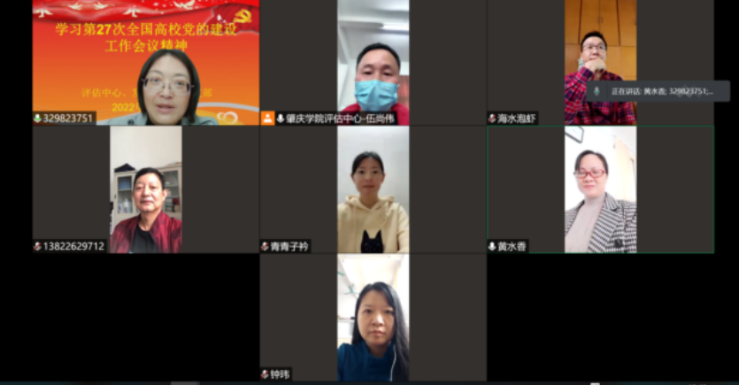 3月25日,评估中心、发展研究院党支部通过腾讯会议线上开展了学习贯彻第27次全国高校党的建设工作会议精神的活动,会议由党支部书记李佩环主持。