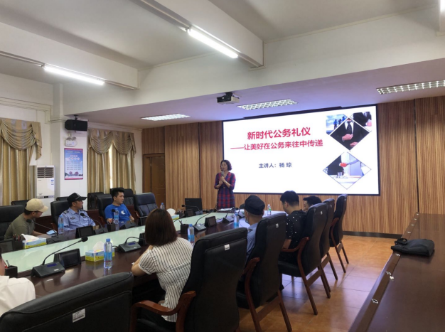 杨琼老师通过丰富的理论知识现场演示互动方式向参训人员介绍了公务礼仪的含义、特点、原则等理论知识,全面讲解了仪表着装、举止交往、沟通礼仪、乘车礼仪、用餐礼仪、电梯礼仪和电话礼仪等基本常识,使参训人员掌握了在各种公务活动中提升自身修养和魅力的技巧。