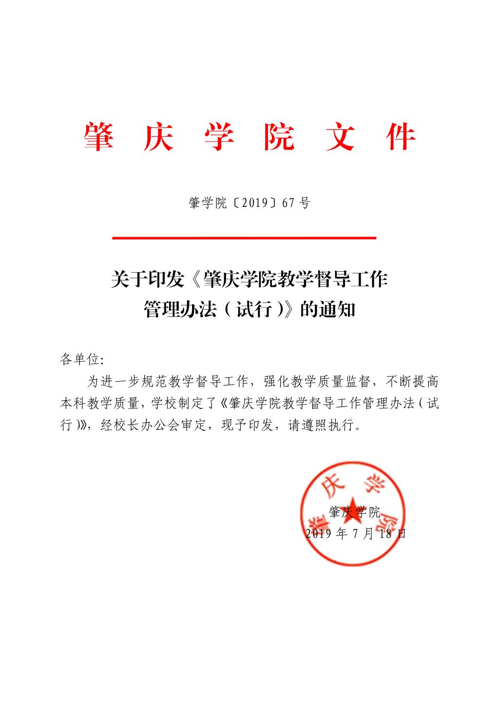 附件【肇学院〔2019〕67号关于印发《william威廉中文官网教学督导工作管理办法(试行)》的通知.docx已下载