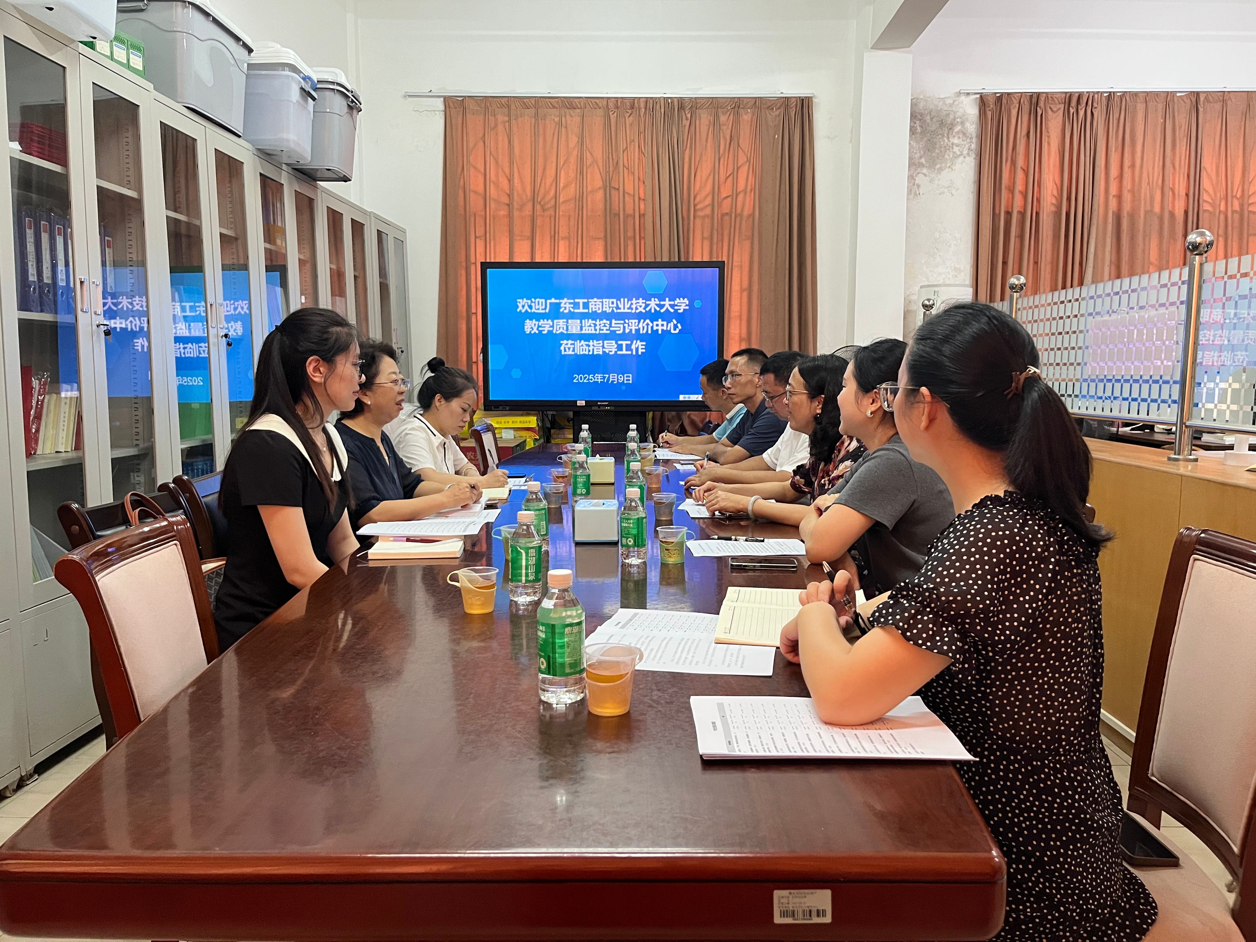 2025年7月9日,广东工商职业技术大学教学质量监控与评价中心郭辉副主任一行三人到我中心就教学质量管理平台使用与管理进行交流。
