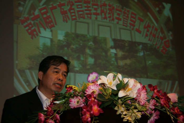 广东省教育厅高教处胡振敏处长在开幕式上致辞。他就如何做好我省高校教学督导工作发表讲话,他说,《国家中长期教育改革和发展规划纲要》对提高教育质量、建立教学质量保障体系有明确的论述,怎样完善教学质量保障体系是省教育厅工作重点之一。教学督导在促进教学管理、改善育人环境、掌握教学现状等方面发挥了重要作用,希望与会代表从建立教育教学质量保障体系的高度来看待督导工作。要更好地完成既定督导目标,就要统筹规划教学督导,完善督导长效机制,建立科学规范的管理制度。各高校要充分认识督导工作重要性,认真研究和积极改进督导方法,使教学督导在我省高校教学质量监控中起到应有作用。
