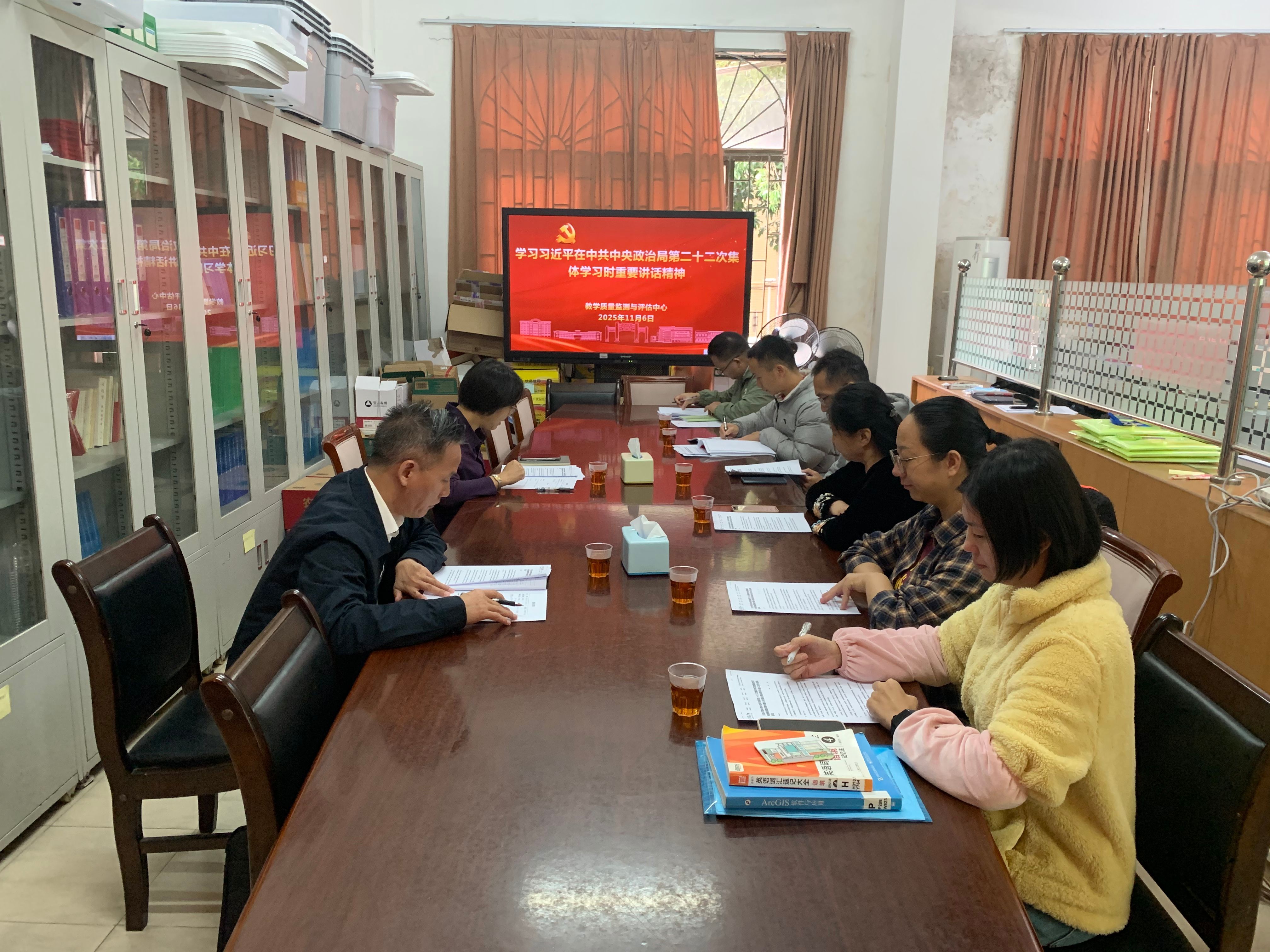 11月6日上午,教学质量监测与评估中心党支部在行政楼124室召开专题学习会,组织全体党员集中学习习近平在中共中央政治局第二十二次集体学习时重要讲话精神,切实把思想和行动统一到党中央决策部署上来。