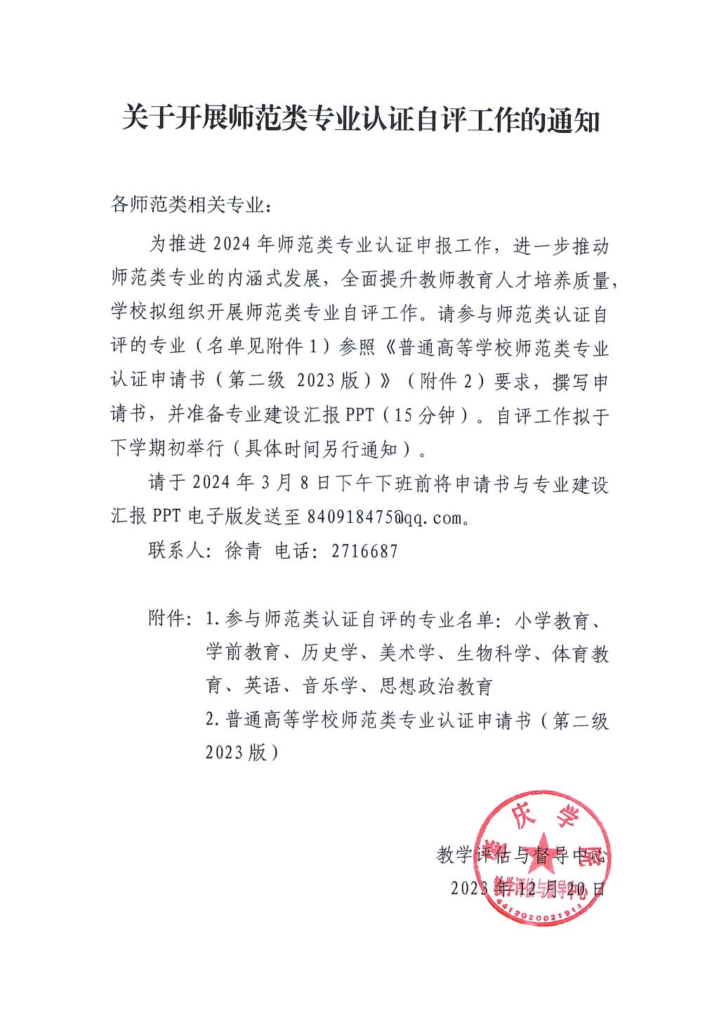 附件【关于开展师范类专业认证自评工作的通知.pdf已下载