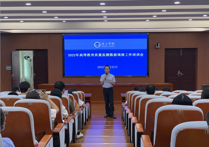 为了做好明年即将开展的本科教育教学审核评估工作,推动我校2022年高等教育质量监测数据采集与填报工作进度,提高数据填报质量,9月23日,评估中心举办了2022年高等教育质量监测数据填报工作培训会,会议邀请了校外数据填报专家以视频会议的方式为各相关部门开展了分类别、分批次的培训辅导工作,评估中心冯卓主持了会议。各相关职能部门及各二级学院共90多人参加了此次培训。在培训会议上,专家对2022年数据填报的变化情况以及数据采集要求进行了说明,就重要核心数据填报的注意事项等方面进行了解读。此次培训强调了数据填报人员要深刻理解数据项内涵,保证数据统计口径的连续性和一致性,做好和往年数据的对比,保证填报数据的高质量。同时,数据填报部门要做好数据审核工作,保证数据的准确性,提高填报工作效率。